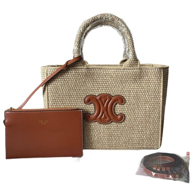 Celine Woven Front Logo Basket Tote
