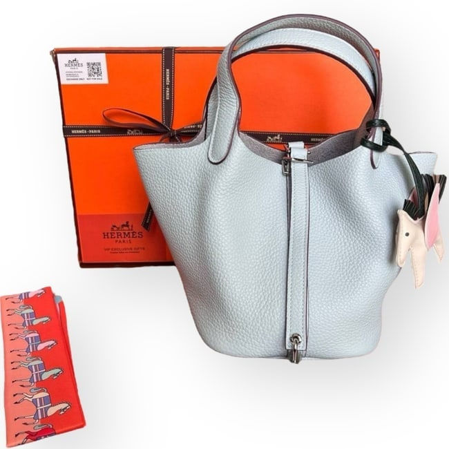 Hermes Light Blue Picotin Beaute Bag, Lock, & Key