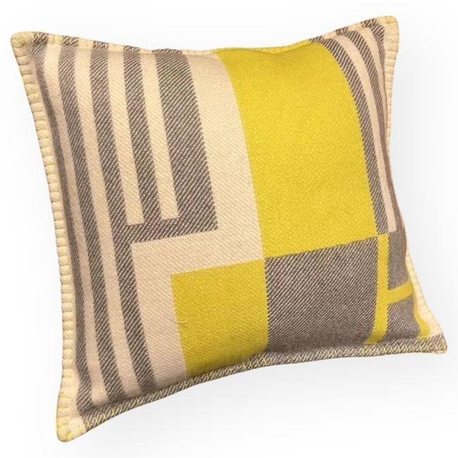 Hermes OmYellow & White Custom Ithaque H Logo Throw Pillow